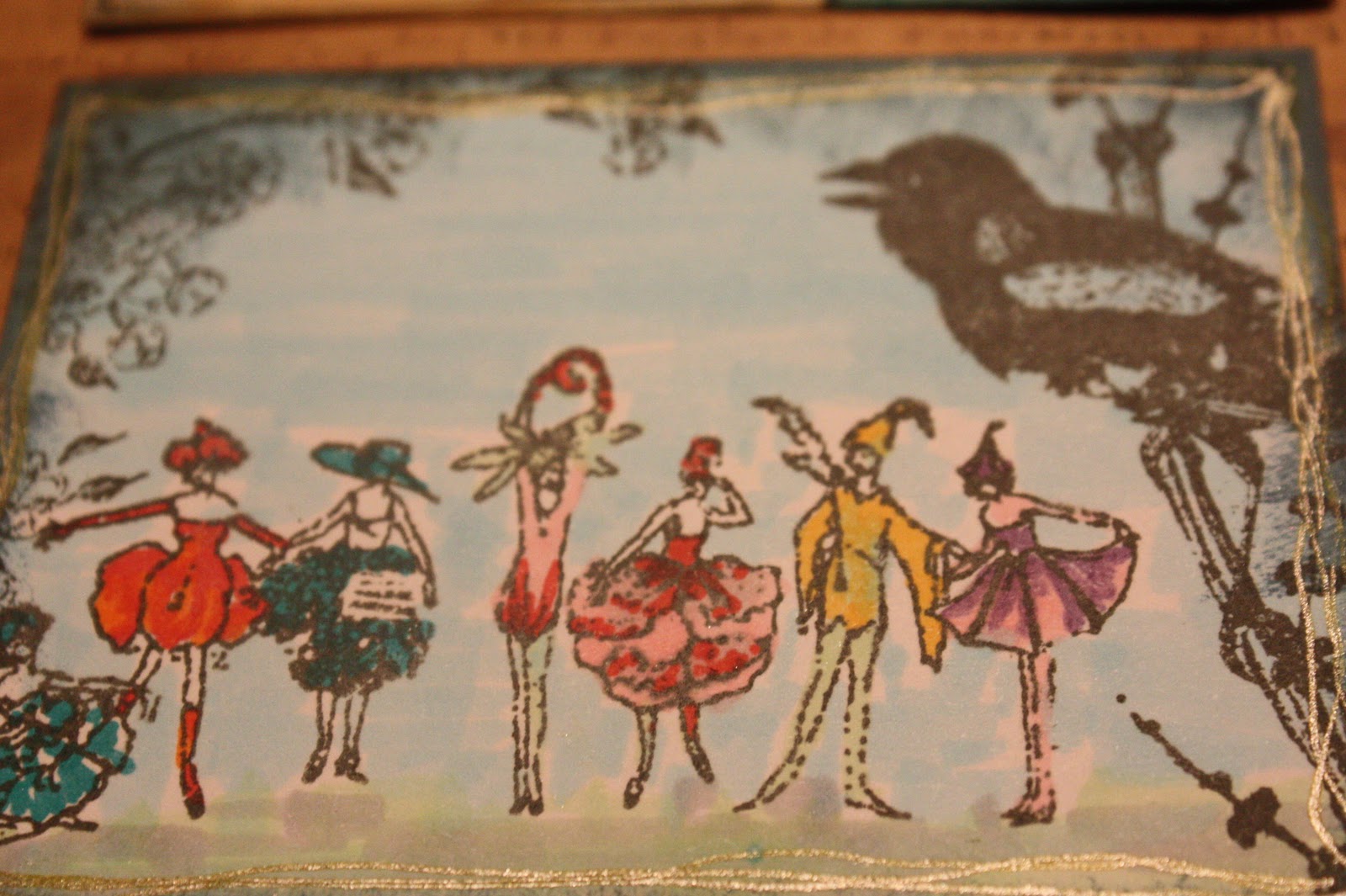 There are plenty of odd little creatures in the world, and I love the idea of using them in a piece of artwork. Such a great theme from TMTA this week. I have a stamp with a row of odd little creatures on from Prima and just had to make two ATC's for this one. I collaged a background for one and stamped the other, then added colour using copic pens and distress inks.